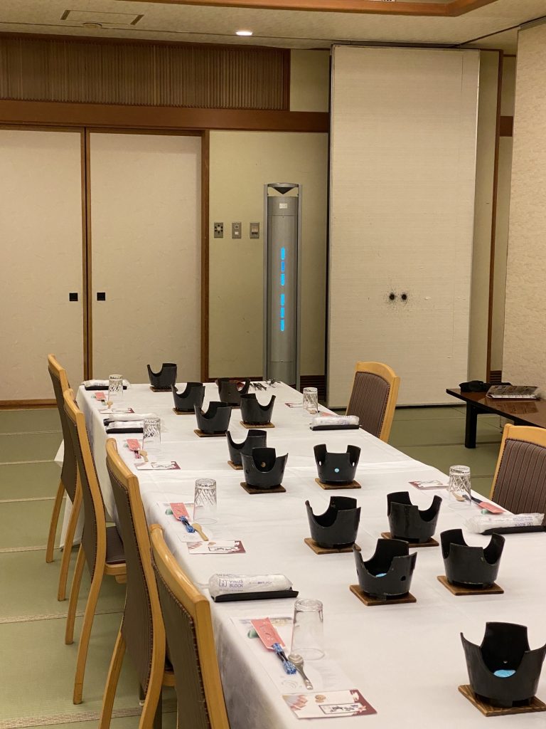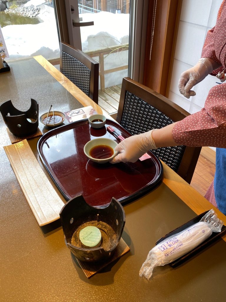 ■従来、食器やお食事の一部は予めテーブルに用意した状態でお待ちしておりましたが、飛沫感染を防ぐ為、 掛け紙等で保護した状態となります。ご了承ください。