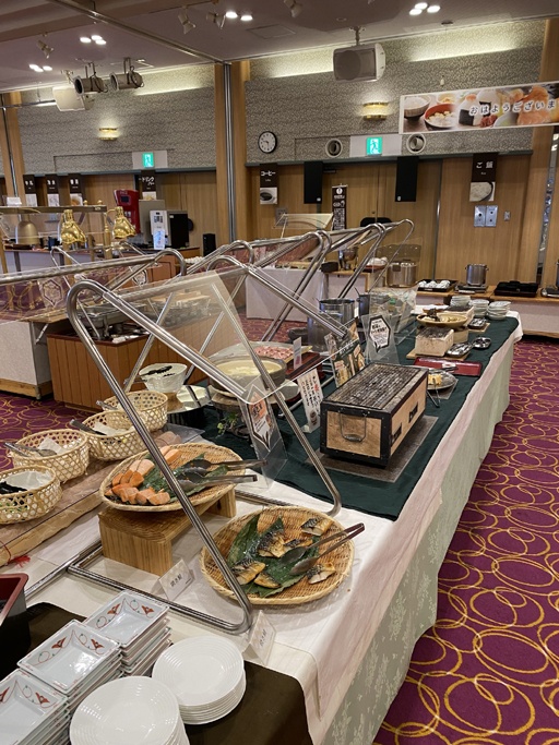 ■朝食バイキング会場では、お食事・お飲物をお取りになる際はマスクの着用及び備え付けの使い捨てビニール手袋をお使いいただきますようご協力をお願い致します。
