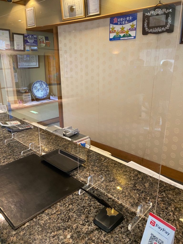 ■フロントカウンターには飛沫飛散防止対策の為、透明仕切り板を設置しています。