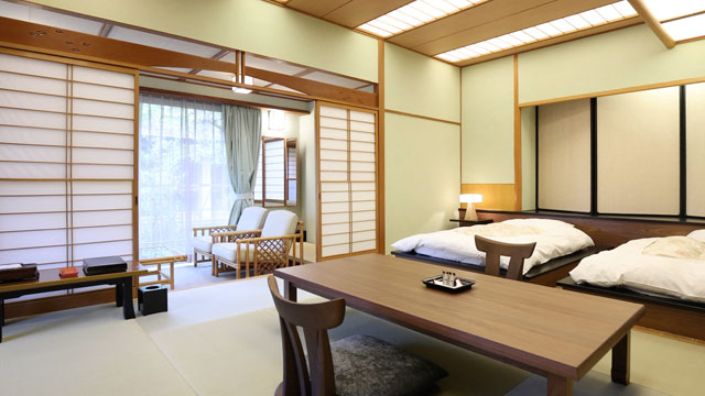 落ち着きある空間の「椿」には新たにベッドを配置し、布団よりもベッドがお好みの方にもおすすめです。ご夕食は離れ専用のお料理を提供するプランをご用意しております。