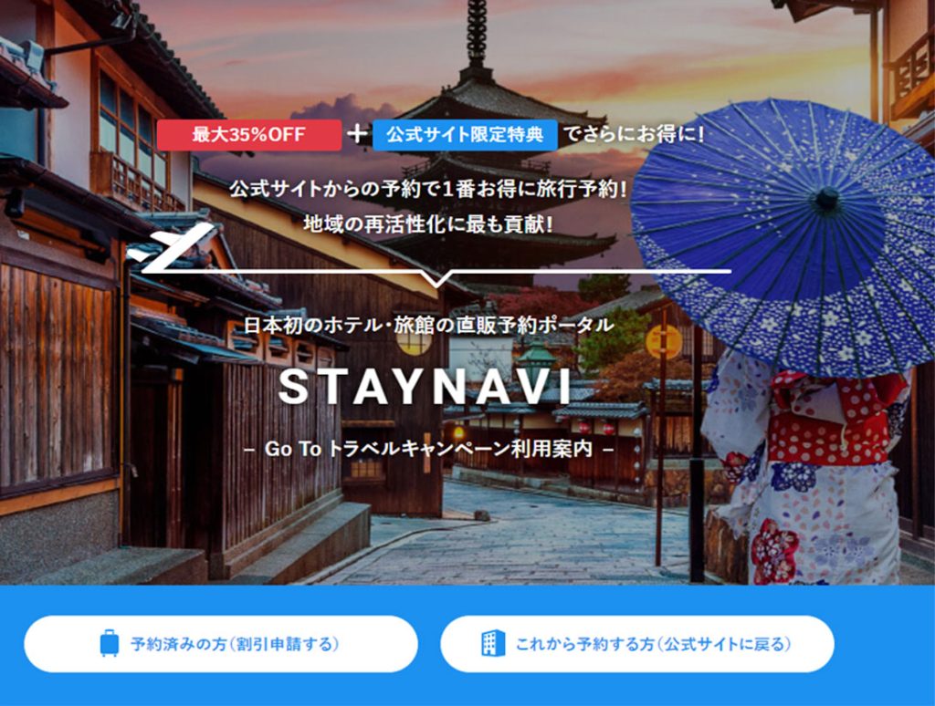 ◈ 予約後、必ずSTAYNAVI(ステイナビ)サイトに移動し、Go To トラベルキャンペーン割引の手続きを行なってください。